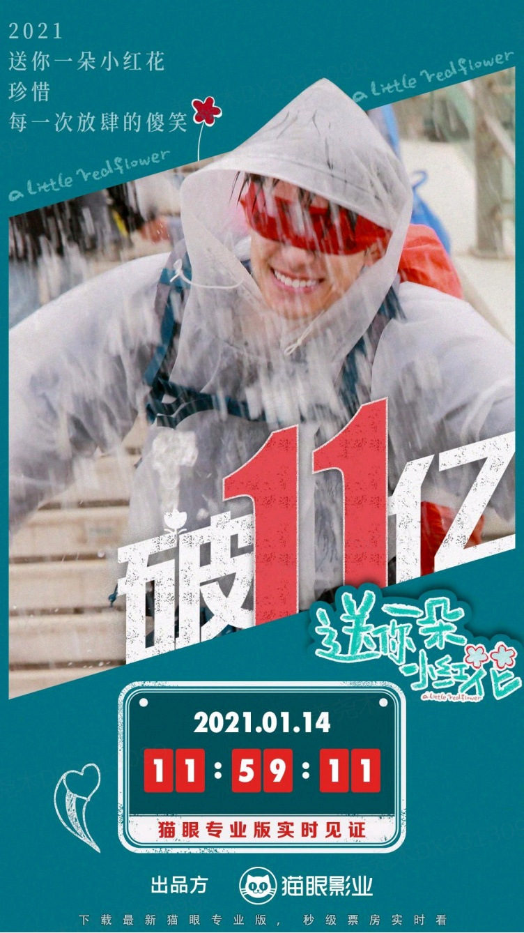 2021年1月10日,该片总票房破10亿,成为中国影史上第79部破10亿的电影。《送你一朵小红花》的亮眼表现在2021年开了个好头,对于即将到来的春节档,我们也同样充满期待。