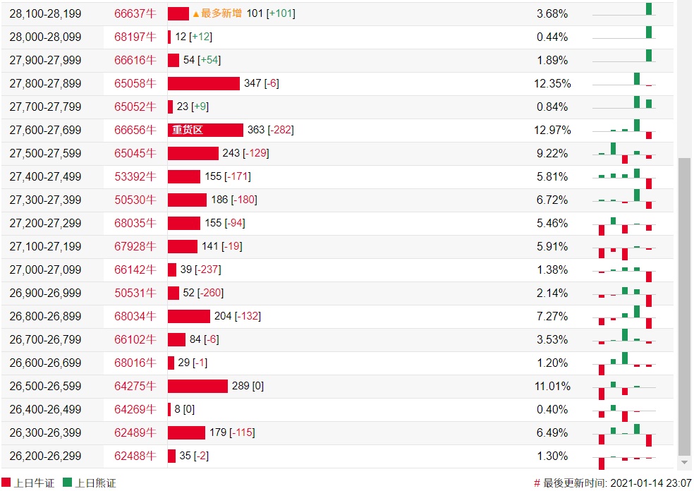 法兴恒指牛熊证街货分布图中的数据显示,熊证街货重货区在28800-28899区间,该区间最新熊证数量为1119张,较上一交易日增加273张;最多新增在29800-29899区间,该区间最新熊证数量为425张,较上一交易日增加363张。牛证街货重货区在27600-27699区间,该区间最新牛证数量为363张,较上一交易日减少282张。最多新增在28100-28199区间,该区间最新牛证数量为101张,较上一交易日增加101张。