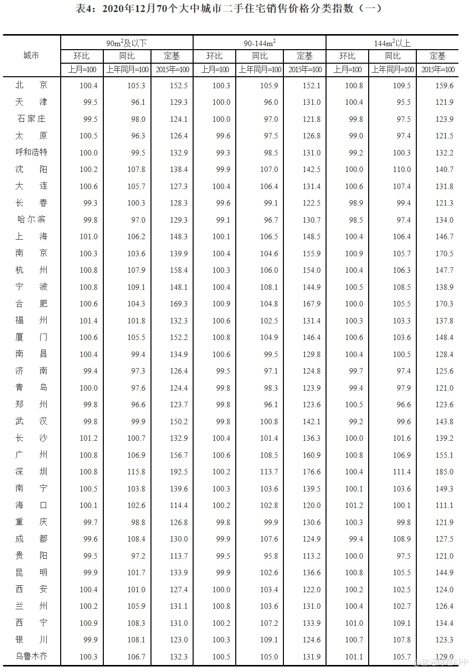 初步测算,12月份,4个一线城市新建商品住宅销售价格环比上涨0.3%,涨幅比上月扩大0.1个百分点。其中,北京、上海和广州分别上涨0.3%、0.2%和0.7%,深圳下降0.1%。二手住宅销售价格环比上涨0.6%,涨幅比上月扩大0.1个百分点。其中,北京、上海、广州和深圳分别上涨0.5%、0.6%、0.7%和0.5%。31个二线城市新建商品住宅和二手住宅销售价格环比均上涨0.1%,涨幅均与上月相同。35个三线城市新建商品住宅和二手住宅销售价格环比分别上涨0.1%和0.2%,涨幅均与上月相同。