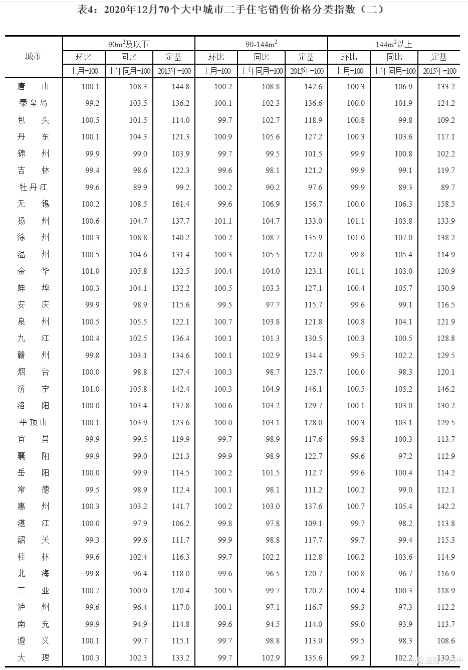 初步测算,12月份,一线城市新建商品住宅销售价格同比上涨3.9%,涨幅与上月相同;二手住宅销售价格同比上涨8.6%,涨幅比上月扩大0.3个百分点。二线城市新建商品住宅销售价格同比上涨4.0%,涨幅比上月回落0.2个百分点;二手住宅销售价格同比上涨2.2%,涨幅比上月扩大0.1个百分点。三线城市新建商品住宅和二手住宅销售价格同比分别上涨3.5%和1.4%,涨幅比上月分别回落0.3和0.1个百分点。