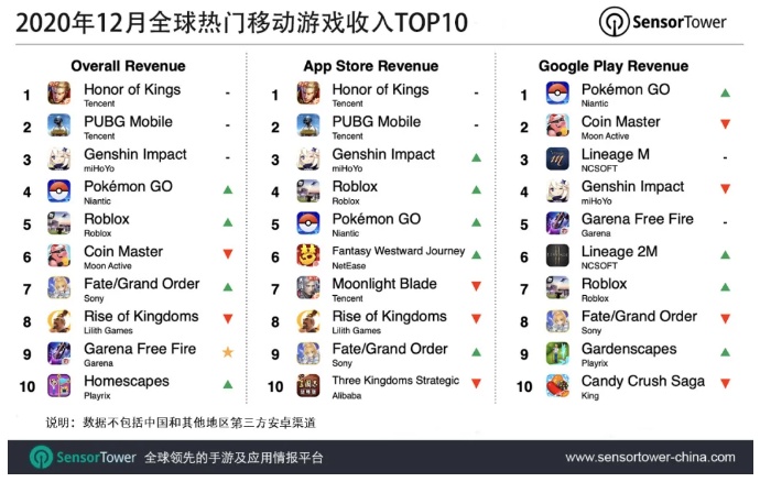 榜单前五另外三款游戏为米哈游《原神》,Niantic《精灵宝可梦GO》(Pokémon GO),以及《Roblox》。