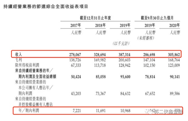 财务数据显示,2017财年至2019财年公司总营收分别为人民币2.78亿元、3.29亿元及3.87亿元,复合年增长率达18%;同期净利润分别为4794万元、7779.5万元及9560万元,复合年增长率为37.7%。