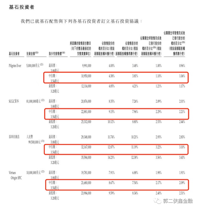 此次IPO引入4名基石投资者,包括招商局及GLP集团旗下的深圳市旗昌投资认购9950万人民币、深圳市创新投资集团认购8100万元、双城资本认购1000万美元、新世界旗下Pilgrim Ever Project Company认购约500万美元,合共认购4070万美元(约3.17亿港元)股份,按中间价计算,约占发售股份35.07%,设六个月禁售期。