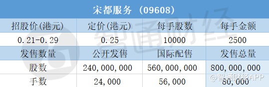 智通财经APP获悉,1月15日,宋都服务(09608)配售结束。配售招股价0.21-0.29港元,最终定价0.25港元,每手2500港元。