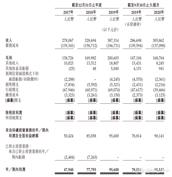 财务方面,2017至2019年公司收入分别为2.78亿元人民币(单位下同)、3.29亿元以及3.87亿元,年复合增长率为18%;同期公司净利润分别为4794万元、7779.5万元及9560万元,复合年增长率为37.7%。截至2020年9月30日,公司收入为3.06亿元,净利润9014.1万元,分别同比增长6.7%以及14.4%。