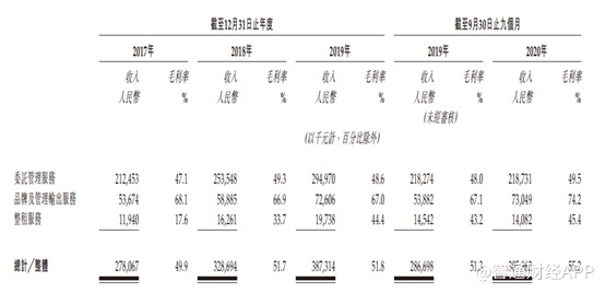 基于商用物业的特点及状况,星盛商业采用委托管理服务模式、品牌及管理输出服务模式以及整租服务模式三个运营模式。从收入细分来看,2019年公司委托管理服务收入约2.95亿元,占比76.22%,品牌及管理输出服务收入为7260.6万元,占比18.76%,整租服务收入1973.8万元,占比5.1%。