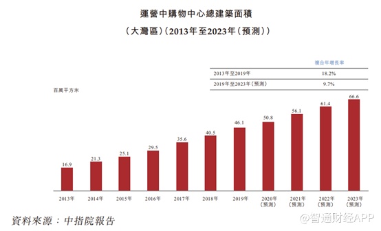 单以商用物业运营服务市场来说,2013-2019年大湾区的运营中购物中心总建筑面积由1690万平方米增加至4610万平方米,复合年增长率为18.2%,并将于2023年末达到6660万平方米,相当于此四年间复合年增长率为9.7%。