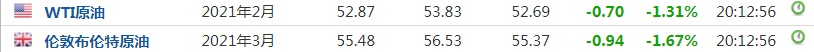 截至发稿,WTI原油跌1.31%,报52.87美元/桶。布伦特原油跌1.67%,报55.48美元/桶。