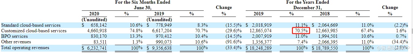 为何讯鸟软件的收入增长如此滞缓?从收入类别来看,2019年时,该公司收入占比最大的是定制化云服务,占比高达70.5%,不论是2018年或是2020年上半年,定制化云服务都是总收入的绝对大头。