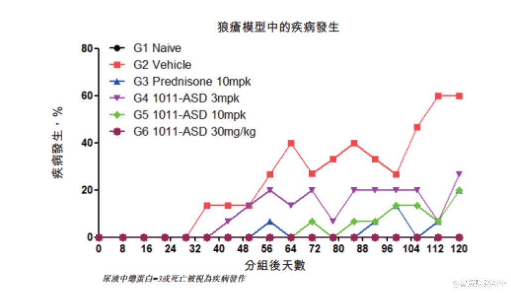 另一方面,在细胞水平上,SN1011在体外抑制原代B细胞的繁殖,而对T细胞繁殖并无任何影响。SN1011以剂量依赖性方式有效减缓胶原蛋白诱发的小鼠关节炎模型(mCIA)中的疾病进展并降低胶原蛋白抗体诱发的小鼠关节炎模型(mCAIA)中的疾病发生率。尽管对hERG具有一定的抑制作用,但SN1011对小猎犬的心血管系统以及SD大鼠的呼吸系统及中枢神经系统并无明显的影响,安全性亦有所保障。