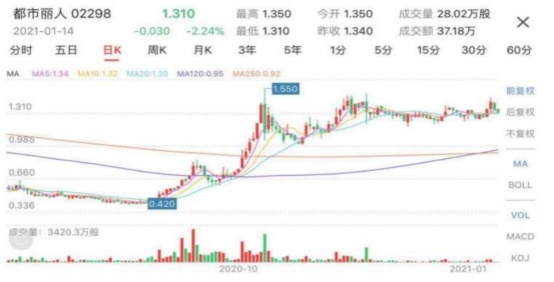不同的是,波司登股价在过去三年已经实现近10倍的涨幅,而都市丽人还处于上升阶段。借助这个“凛冬”都市丽人股价进一步迸发的可能性或许更强。