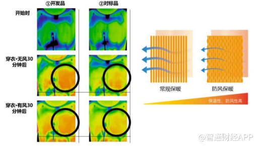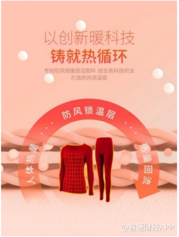 据了解,暖科技防风保暖内衣——风隔暖,旨在解决市面上的保暖内衣只保暖不防风痛点,面料采用94%腈纶和6%氨纶的黄金配比,兼容亲肤、防风、保暖、透气等实用特性。