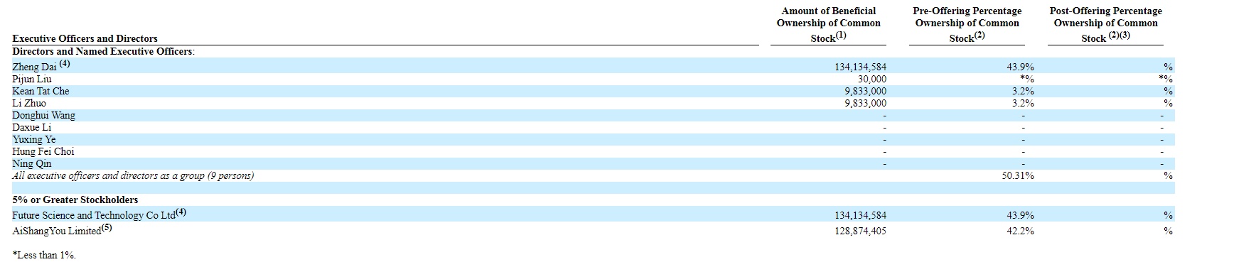 IPO前,公司董事会主席Zheng Dai持股比例为43.9%;