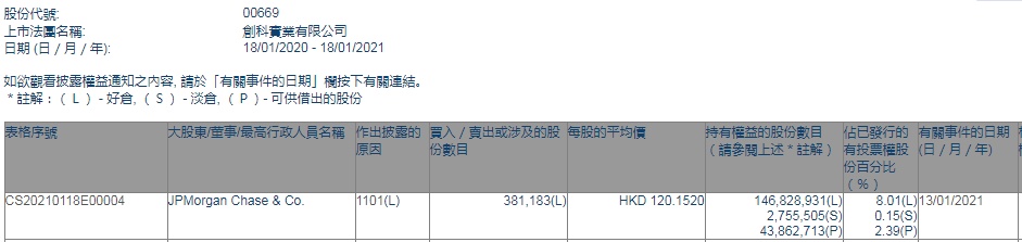 智通财经APP获悉,香港联交所最新资料显示,1月13日,摩根大通增持创科实业(00669)38.1183万股,每股作价120.152港元,总金额约为4580万港元。增持后最新持股数目约为1.47亿股,最新持股比例为8.01%。