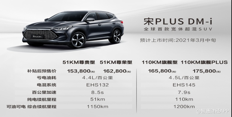 智通财经APP获悉,2021年1月11日,比亚迪正式发布DM-i超级混合动力平台,并宣布搭载DM-i超级混动平台技术的三款新车型:秦PLUS DM-i、宋PLUS DM-i、唐DM-i开始预售。上述三款车型预计在从今年3月初开始陆续上市。
