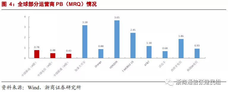 运营商板块,当前H股中国移动、中国联通、中国电信PB仅0.78倍、0.43倍、0.48倍,大幅低于5年历史中枢的1.29倍、0.77倍、0.80倍,更低于全球行业可比水平的1.85倍。运营商基本面稳中向好,有望继续估值修复,投资价值凸显。