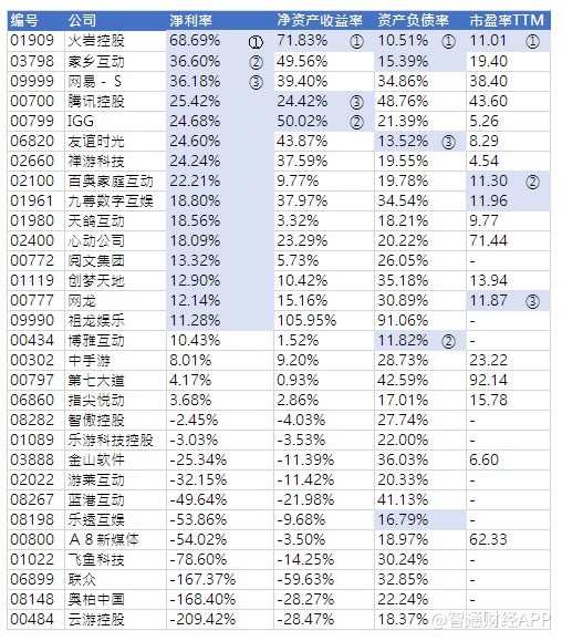 净利率按年上升,可能基于盈利能力提升,也可能是纯粹的成本下降。若果公司的盈利空间接近饱和,依靠出售资产或裁减人员以维持收入,这不是投资者喜闻乐见的情况。股东权益报酬率又称净资产收益率,可用以衡量公司运用股东资金的效率,即资金转化为净收益的能力(手游板块净利率中位数为10.86%)。