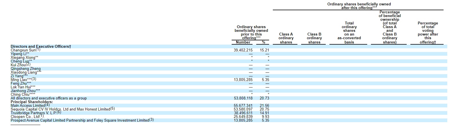 红杉中国旗下Sequoia Capital CV IV Holdco, Ltd和Max Honest Limited持股比例为20.75%;