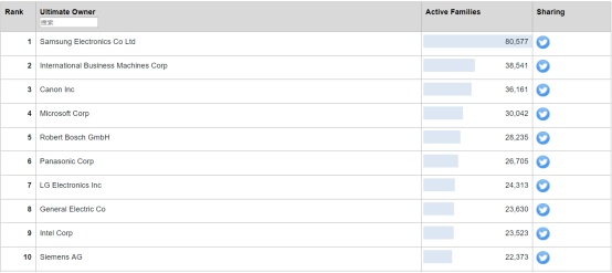 IFI250榜单既关注实际拥有专利的公司,也汇总了母公司内部的子公司专利持有量。因此三星以80577个有效专利系列,两倍于IBM(IBM.US)的38541个,位居总榜单榜首。近年来IBM的有效专利资产因2014年公司芯片业务被出售给GlobalFoundries等重大交易事件而减少。