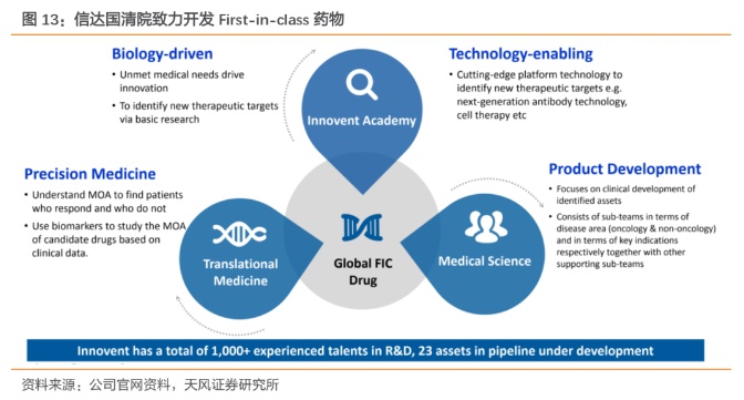 公司成立国清院,致力于开发FIC新药。国清院(Innovent Academy)由刘勇军博士领导,其曾担任阿斯利康的首席科学家,以及赛诺菲的全球研究负责人。国清院致力于研究兼顾未满足的临床需求和商业价值的全球创新管线。国清院将是信达强有力的新药发现引擎,加速全球首创药物(First-in-class)的研发工作。
