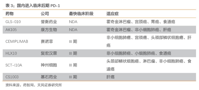 PD-1领域的竞争在中国尤为激烈。除了已经上市的6个产品外,还有多家公司进行临床后期试验。