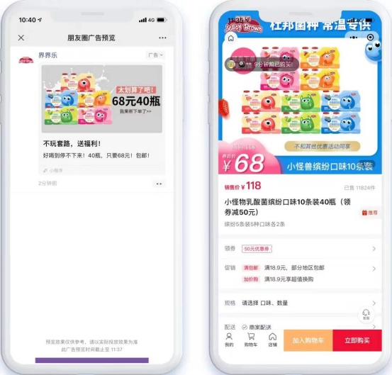 事实上,利用视频号为品牌商建立一个全链路营销模型已经在微盟开始尝试。以美国乳酸菌品牌“界界乐”为例,在微盟数字化全链路解决方案的助力下,通过朋友圈广告投放、公众号内容运营以及微信视频号营销等,为品牌营销布局和私域运营转化找到了关键的突破口。