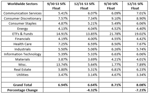 智通财经APP获悉,根据金融分析公司S3 Partners的数据显示,2020年第四季度,全球市场做空比例下降了4%,S3做空比例(包括做空交易产生的“合成多头”)下降了7%。