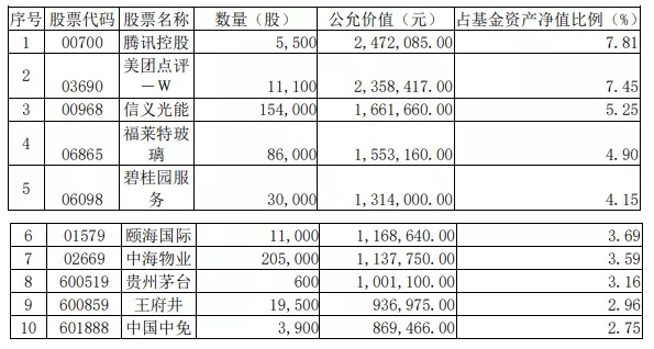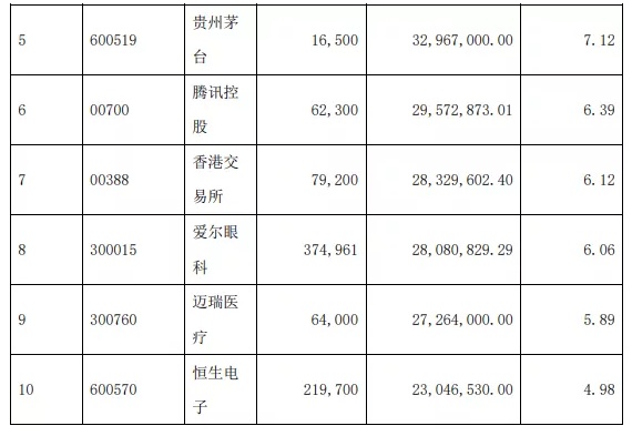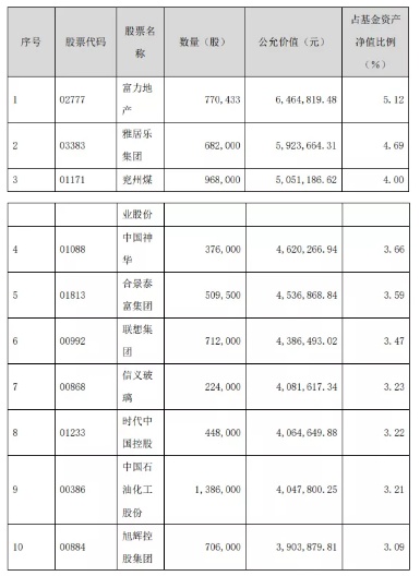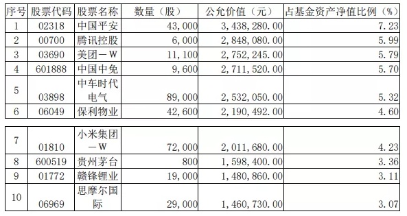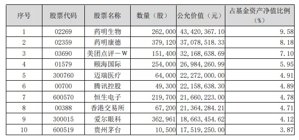 而其3季度报告期,前十大重仓股为: