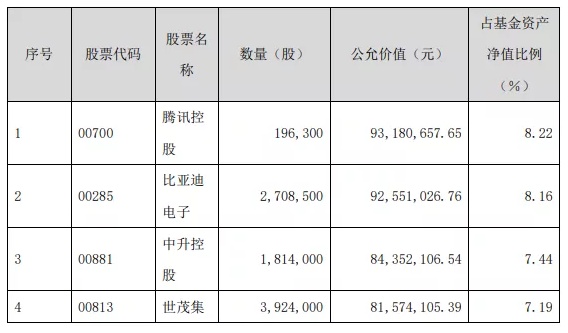 海尔智家(06690)、蒙牛乳业(02319)、中国平安(02318)、舜宇光学(02382)、比亚迪股份(01211)、思摩尔国际(06969)、赣锋锂业(01772)、小米集团-W(01810)、保利物业(06049)、中车时代电气(03898)、中国平安等都是旗下基金4季度新买入个股。