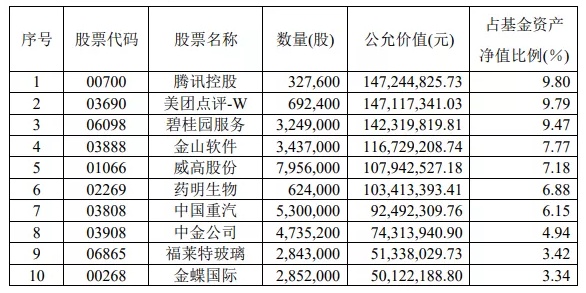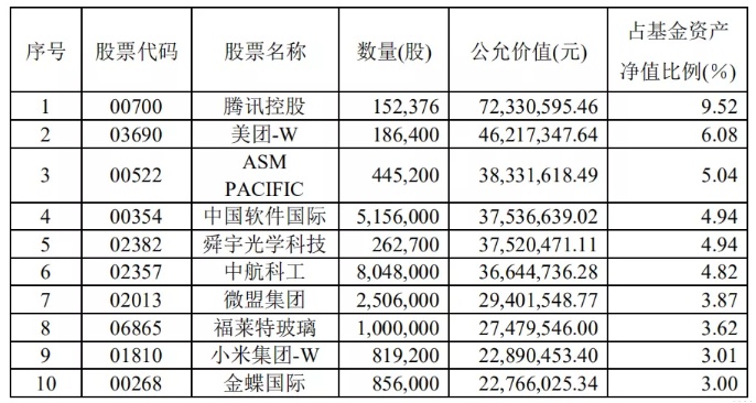 根据嘉实旗下基金的三季度报告和四季度报告,可以看出腾讯控股是“标配”。此外,金蝶国际、药明生物、小米也占据重要位置。
