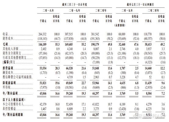 招股书显示,2018至2020财年公司营业收入分别为2.64亿港元、3.07亿港元及3.82亿港元,以及1.18亿港元,年复合增长率为20.3%。截至2020年7月31日,公司营业收入1.18亿港元,同比增长73.53%。从营收增速表面来看,过去几年公司取得了较好的增速,但实际上该收入增速也是靠收购Orizen得到的。