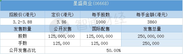 智通财经APP获悉,1月25日,星盛商业(06668)配售结束。配售招股价3.2-3.88港元,最终定价3.86港元,每手3860港元。