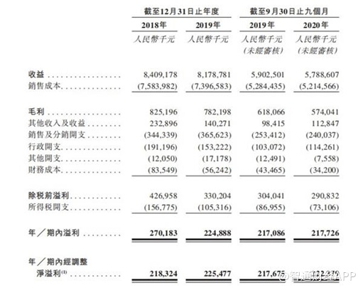 从收入结构来看,截至2018及2019年以及截至2020年9月30日止九个月,来自销售汽车的收益分别约占期内总收益的87.4%、86.4%及87.1%。可见,新车销售仍然占据公司收入的大头。