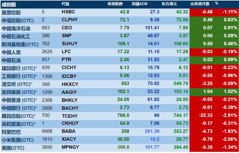 智通财经APP获悉,周一美股三大指数涨跌不一,港股ADR指数下挫,按比例计算,收报29869点,跌289.89点或0.97%。