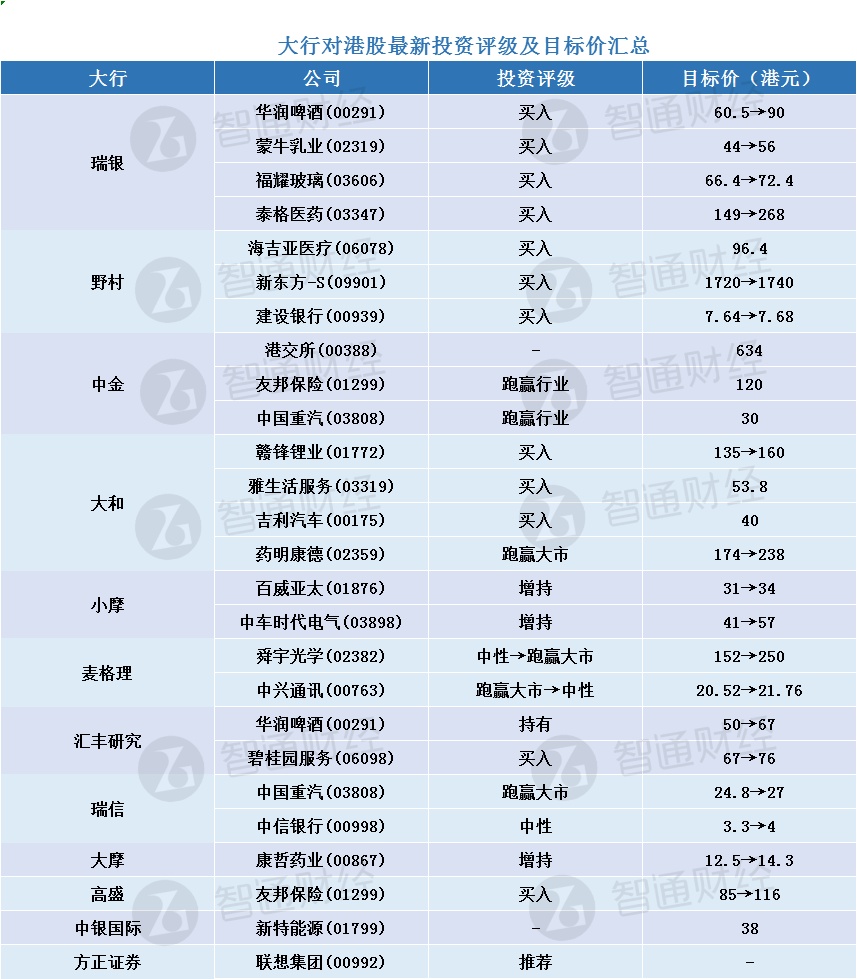 七、大行对长城汽车(02333)最新投资评级及目标价