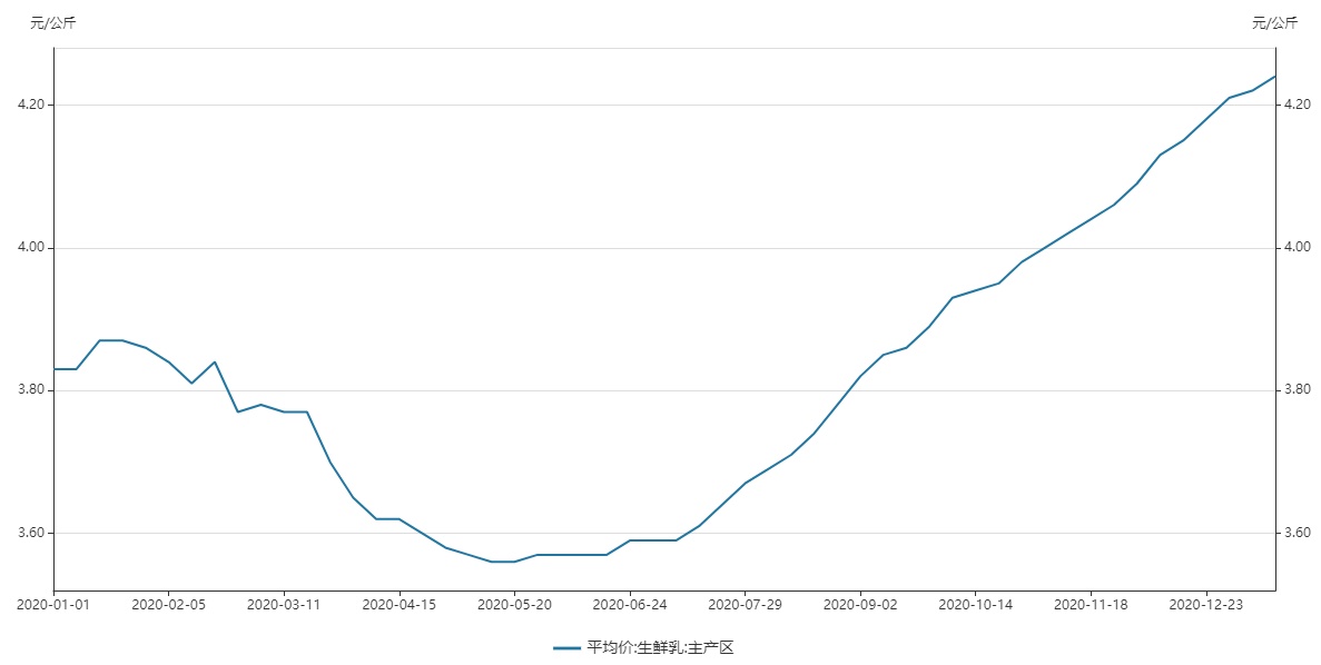 截至2021年1月23日,原奶价格已经达到4.24元/公斤,越过2014年的价格高位。