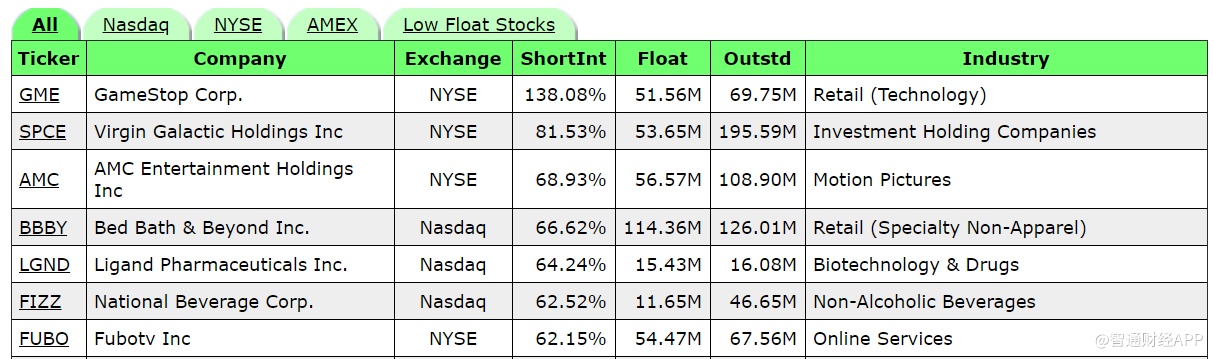 智通财经APP获悉,1月26日(周二)美股盘初,维珍银河(SPCE.US)股价上涨,截至北京时间23:42,该股涨超12%,报40.56美元。值得注意的是,在做空排行榜上,维珍银河仅次于游戏驿站(GME.US)排名第二。