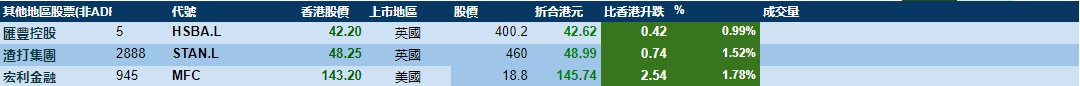 大型蓝筹股多数上涨,汇丰控股收报42.64港元,较港收市升1.04%;腾讯控股收报716港元,较港收市跌0.35%。具体如下: