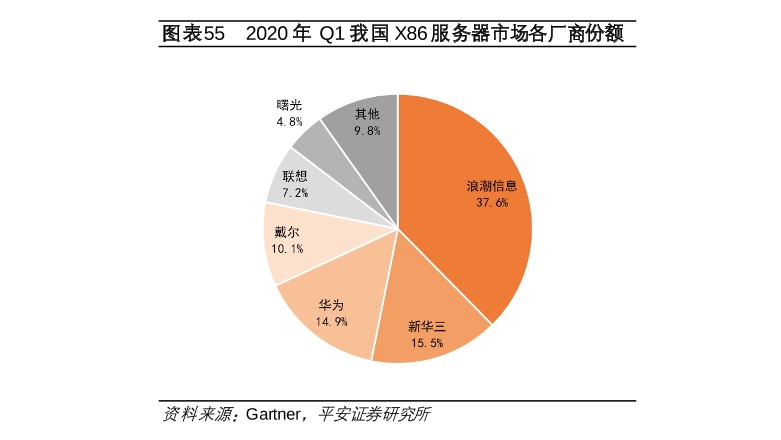 就国内市场而言,服务器前五大生产企业掌握着80%以上的市场份额。各云厂商的服务器硬件基本都来自这五家。