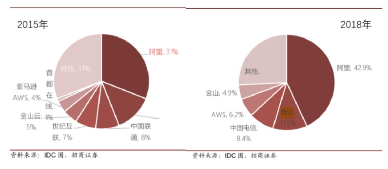 以国内市占率第一的服务器提供商浪潮信息为例,其2018年电话会议提到:公司销售给阿里(09988)、腾讯(00700)、百度(BIDU.US)硬件份额分别占其总需求规模的50%、30%、20%。