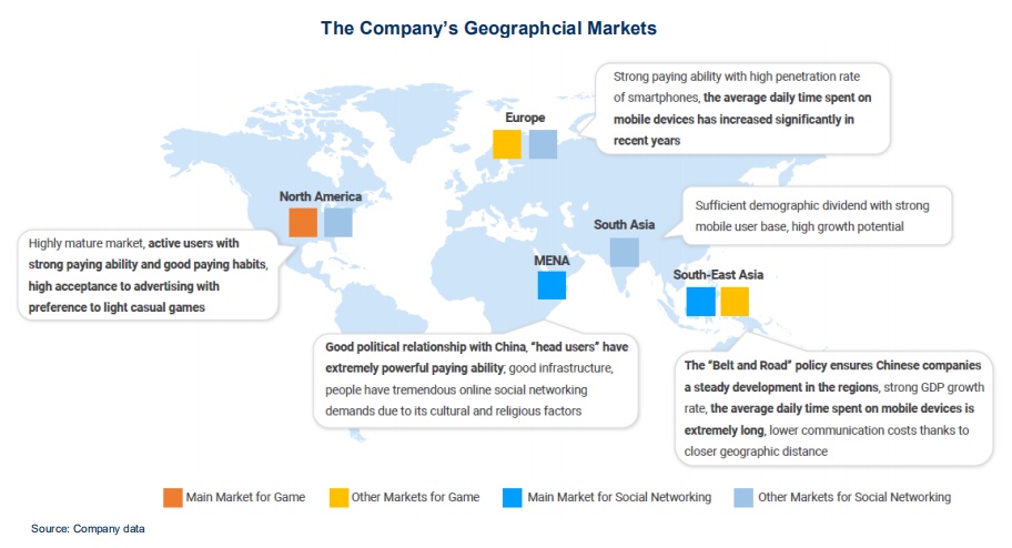 基于对用户需求的洞察,公司有能力不断积累其社交业务的用户池,并提升用户的变现效率。目前,该公司在“一带一路”沿线国家及高ARPU地区持续拓展市场。