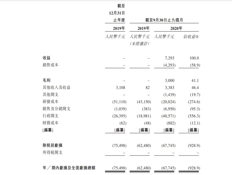 截至2019年9月30日和2020年9月30日止九个月,公司亏损净额由6250万元增加至截至6770万元(单位:人民币,下同);2019年12月31日至2020年9月30日,公司资产总值由9130万元增加至3.758亿;2019年12月31日至2020年9月30日,公司的负债总额由1020万元增加至1.066亿元。