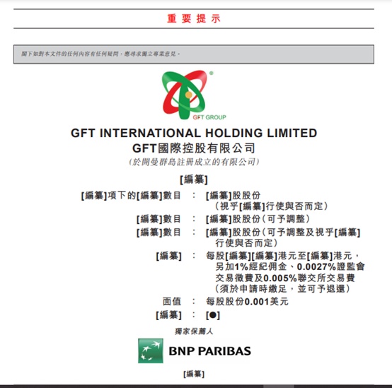 智通财经APP获悉,据港交所1月28日披露,GFT国际控股有限公司(GFT INTERNATIONAL HOLDING LIMITED,以下简称GFT或公司)向港交所递交主板上市申请,法国巴黎银行担任其独家保荐人。