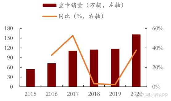股价飙升的背后,是国内加大基建投资力度、新国标替代等多重原因的利好驱动,以及潍柴自身扎实的基本面作为基础。智通财经APP了解到,2020年国内重卡销量累计161.7万辆,同比增长37.7%,行业高景气度仍在延续。作为国内重卡动力总成和整车设计制造销售的龙头企业,潍柴动力始终坚持产品经营、资本运营的双轮驱动经营策略,致力于打造具有品质、技术和成本三大核心竞争力的产品。
