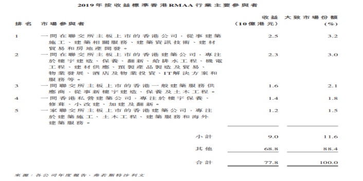 根据弗若斯特沙利文报告,按RMAA工程于2019年产生的收益计算,盈汇企业约占市场份额的0.4%。