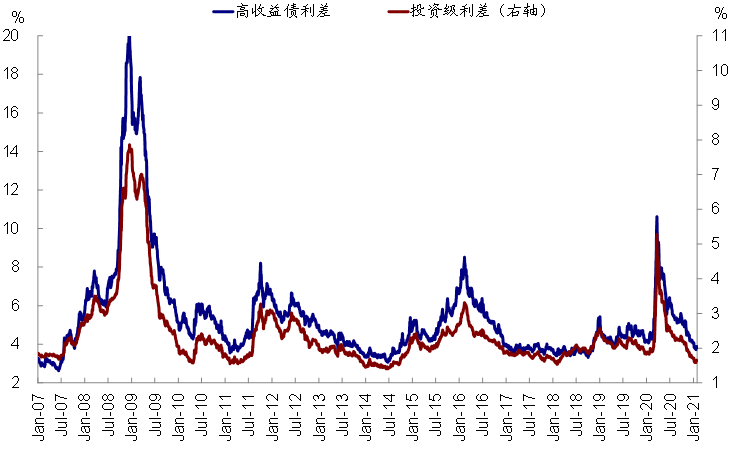 此外,金融市场流动性依然充裕,并未出现收紧;我们认为基本面在新一轮财政刺激和疫苗接种加速的背景下也有望提供支撑