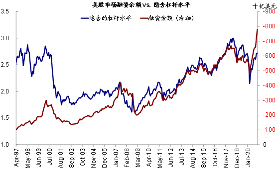 i. 融资余额与隐含杠杆:通过券商融资买入(buying onmargin)规模需要定期披露,这一加杠杆方式可以近似看作以个人投资者为主。截止12月的最新数据显示,融资余额超过7780亿美元的历史高点,占美股总市值的1.1%;不过由于自有资金规模在同样增加,因此隐含的杠杆水平为2.72,低于2018年中接近3倍杠杆的高点。