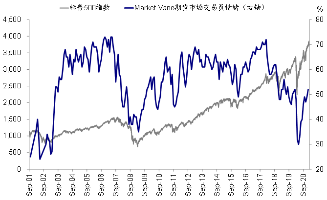 iv. Market Vane期货市场交易员情绪,12月底处于52%的中性水平。