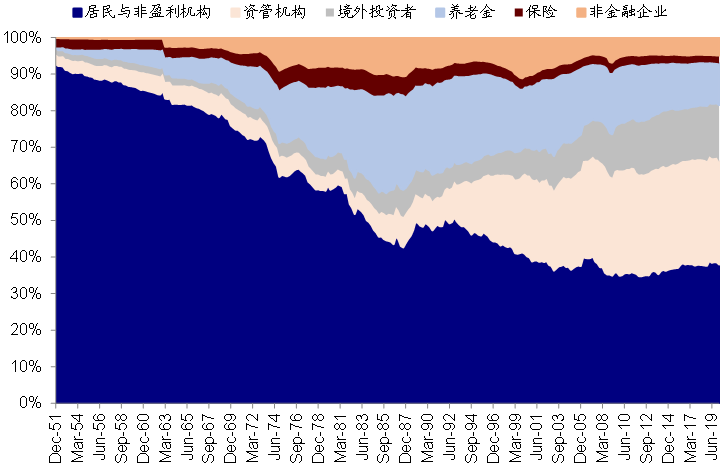 不过需要说明的是,根据美联储定义,由于这一账户为“残差项”,会包含其他所有无法统计的机构(如部分对冲基金、私募股权基金等等),因此如果直接用这个指标作为个人持股占比的衡量的话,会明显高估(《解析美股投资者结构与居民资产负债表》、《美国“影子银行”初探》);