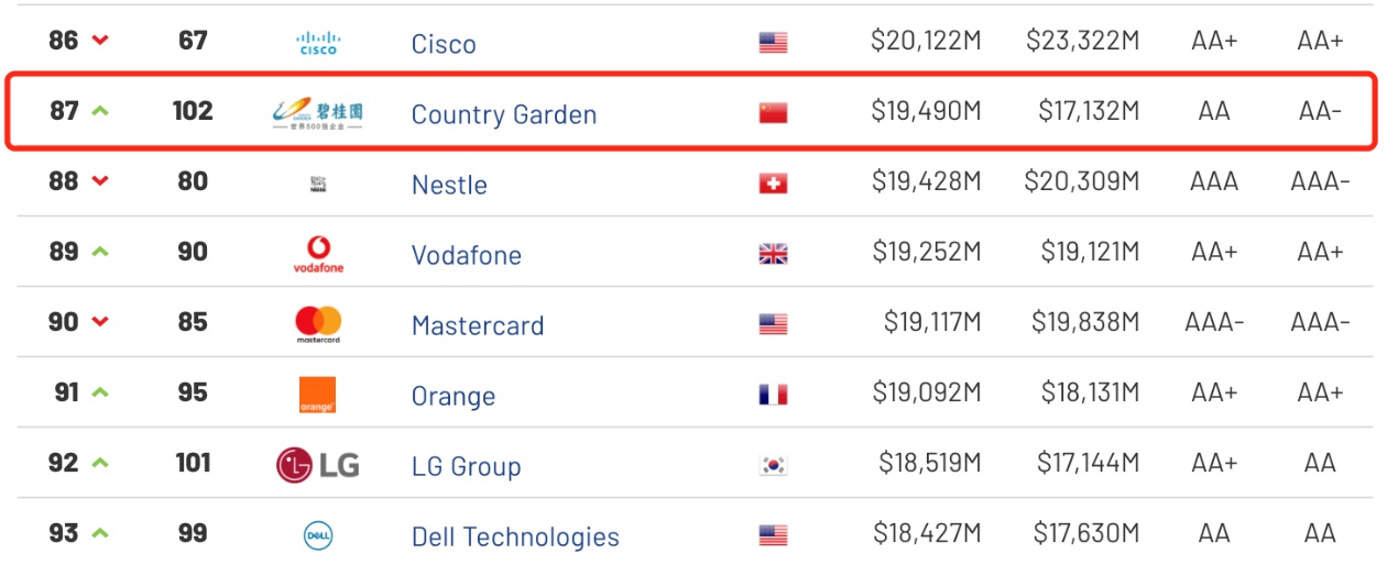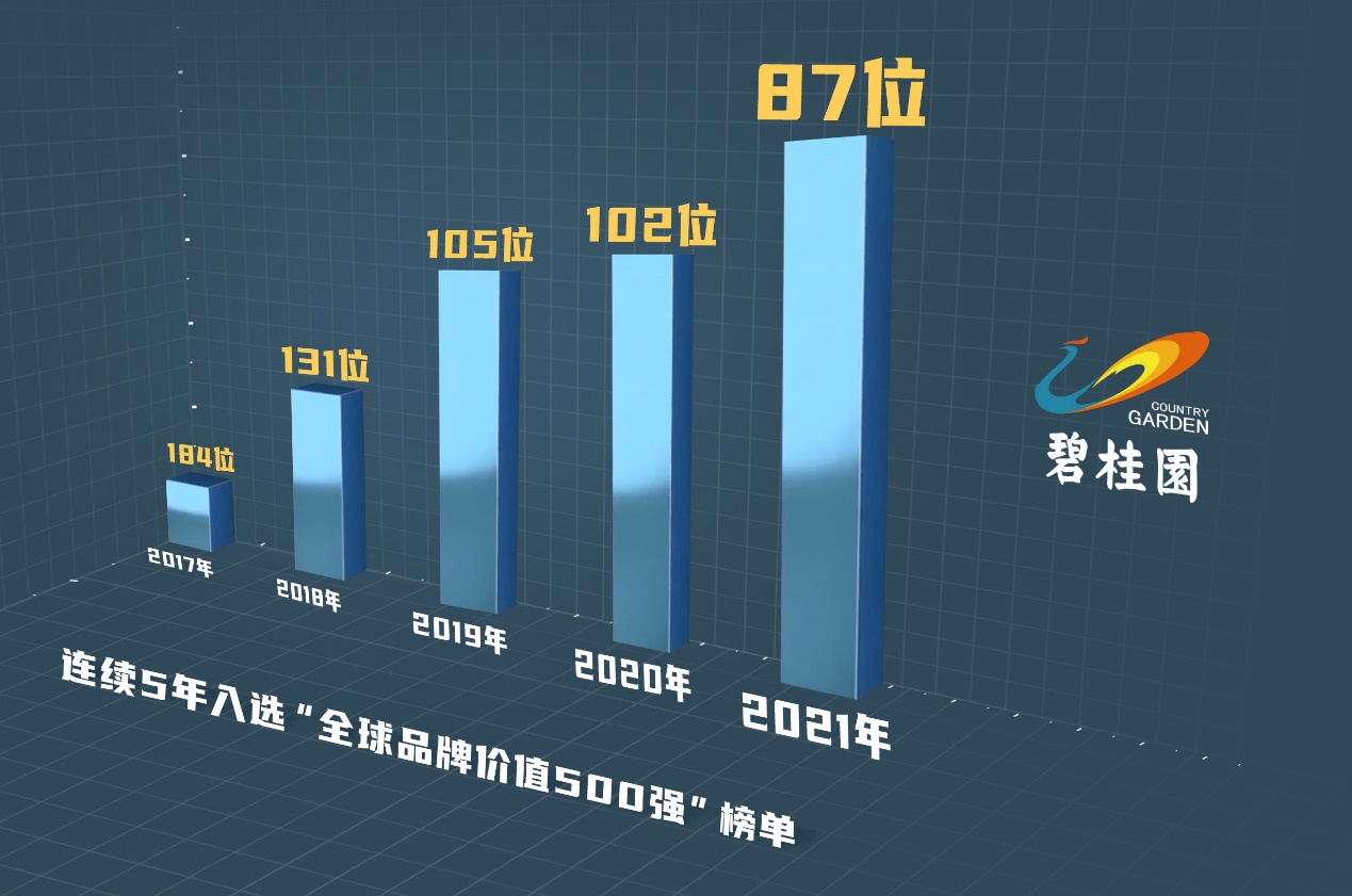 Finance发布“2021年全球品牌价值500强”榜单,碧桂园集团(02007)排名自2017年以来实现“五连跳”,持续攀升至第87位,首次跻身前100位。
